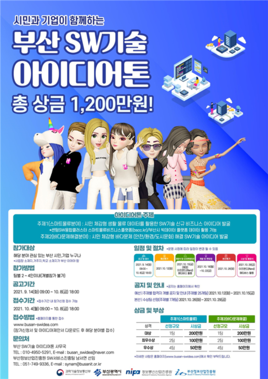 ºÎ»êÁ¤º¸»ê¾÷ÁøÈï¿øÀº SWÀ¶ÇÕŬ·¯½ºÅÍ 2.0 »ç¾÷°ú SOS·¦ ¿î¿µ ¹× SW¼ºñ½º °³¹ß »ç¾÷ÀÇ ÀÏȯÀ¸·Î ºÎ»ê ½Ã¹Î ¹× ±â¾÷À» ´ë»óÀ¸·Î SW±â¼úÀ» Ȱ¿ëÇÑ ¾ÆÀ̵ð¾î ¹ß±¼ ´ëȸÀÎ ¡®ºÎ»ê SW±â¼ú ¾ÆÀ̵ð¾îÅæ¡¯À» °³ÃÖ, Âü°¡ÆÀÀ» ¿À´Â 10¿ù 8ÀϱîÁö ¸ðÁýÇÑ´Ù°í ¹àÇû´Ù. À̹ø ´ëȸ´Â SW±â¼úÀ» Ȱ¿ëÇÑ ¾ÆÀ̵ð¾î ¹ß±¼ÇÏ¿© Çõ½Å ½Ã¹ÎÀ» ¾ç¼ºÇÏ°í ½º¸¶Æ® ¹°·ù/¹Ù´Ù¹®Á¦ÇØ°á ºÐ¾ßÀÇ µ¿¹Ý¼ºÀåÀ» À§ÇØ ¸¶·ÃµÆ´Ù. °ø¸ð ³»¿ëÀº SW±â¼úÀ» Ȱ¿ëÇÑ ½Ã¹Î ü°¨Çü ¾ÆÀ̵ð¾î ¹ß±¼·Î, ½º¸¶Æ®¹°·ù(½Ã¹Î ü°¨Çü »ýȰ ¹°·ù µ¥ÀÌÅ͸¦ Ȱ¿ëÇÑ SW±â¼ú ½Å±ÔºñÁî´Ï½º ¾ÆÀ̵ð¾î ¹ß±¼)°ú ¹Ù´ÙÇØ°áºÐ¾ß(½Ã¹Î ü°¨Çü ¹Ù´Ù ¹®Á¦(¾ÈÀü/ȯ°æ/µµ½Ã¹®È) ÇØ°á SW±â¼ú ¾ÆÀ̵ð¾î ¹ß±¼) µÎ°¡Áö ÁÖÁ¦ Áß °ü½ÉÀÖ´Â ºÐ¾ß¸¦ Çϳª ¼±ÅÃÇØ¼ ½ÅûÇÏ¸é µÈ´Ù.