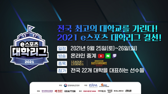 ¹®ÈüÀ°°ü±¤ºÎ°¡ ÁÖÃÖÇϰí Çѱ¹e½ºÆ÷Ã÷Çùȸ°¡ ÁÖ°üÇÏ´Â ¡®2021 e½ºÆ÷Ã÷ ´ëÇи®±×¡¯ °á¼±ÀÌ ¿À´Â 25ÀÏ(Åä), 26ÀÏ(ÀÏ) ¾çÀϰ£ ±¤ÁÖ e½ºÆ÷Ã÷ °æ±âÀå(±¤ÁÖ µ¿±¸)¿¡¼ ¿¸°´Ù.