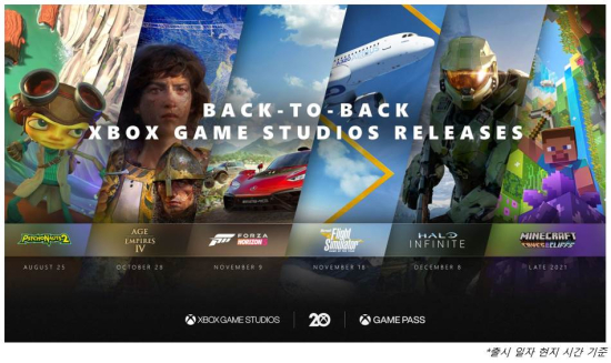 ¸¶ÀÌÅ©·Î¼ÒÇÁÆ®´Â Xbox 20ÁÖ³âÀ» ¸Â°Ô µÇ´Â 2021³â 11¿ù ÀüÈĺÎÅÍ ¿¬¸»±îÁö ¡®¿¡ÀÌÁö ¿Àºê ¿¥ÆÄÀ̾î 4(Age of Empire IV)¡¯, ¡®Æ÷¸£ÀÚ È£¶óÀÌÁð 5(Forza Horizon 5)¡¯, ¡®ÇìÀÏ·Î ÀÎÇÇ´ÏÆ®(HaloX Infinite)¡¯ µî ºí·Ï¹ö½ºÅÍ±Þ ´ëÀÛ Å¸ÀÌÆ²À» ¿¬À̾î Ãâ½ÃÇÒ ¿¹Á¤À̶ó°í ¹ßÇ¥Çß´Ù.