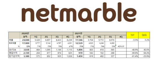[³Ý¸¶ºí] 2021 3Q ½ÇÀû ¹ßÇ¥, ¸ÅÃâ 6,070¾ï ¿ø |