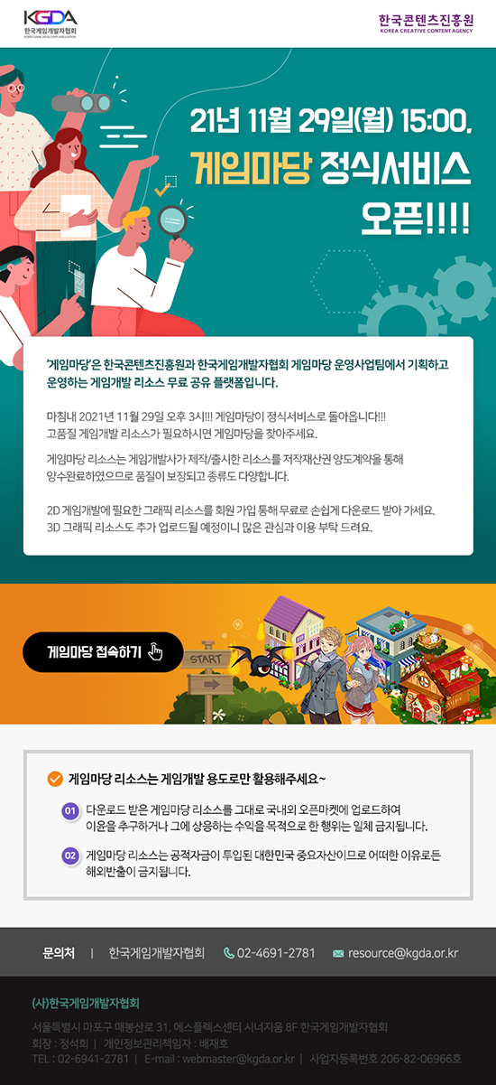 ¹®ÈüÀ°°ü±¤ºÎ°¡ ÈÄ¿øÇϰí, Çѱ¹ÄÜÅÙÃ÷ÁøÈï¿øÀÌ ÁÖÃÖÇϸç, (»ç)Çѱ¹°ÔÀÓ°³¹ßÀÚÇùȸ°¡ ÁÖ°üÇÏ´Â ¡®2021 °ÔÀÓÀÚ·á °øÀ¯¸¶´ç ¿î¿µ»ç¾÷¡¯ÀÇ °ÔÀÓ°³¹ß ¸®¼Ò½º ¹«·á °øÀ¯ Ç÷§Æû < °ÔÀÓ¸¶´ç >ÀÌ Áö³ 11¿ù 29ÀÏ ¿ù¿äÀÏ Á¤½Ä¼ºñ½º¸¦ ½ÃÀÛÇÏ¿´´Ù.