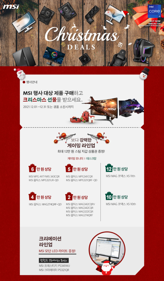 MSI´Â ¿Ã ÇÑÇØ °í°´ÀÇ ¸¹Àº ¼º¿ø¿¡ ÈûÀÔ¾î Å©¸®½º¸¶½º ¹× ¿¬¸»¿¬½Ã¸¦ ¸Â¾Æ À̹ø ÇÁ·Î¸ð¼ÇÀ» ½Ç½ÃÇÑ´Ù. 12¿ù 31ÀϱîÁö Çà»ç ´ë»ó Á¦Ç° ±¸¸Å ÈÄ »ç¿ë±â¸¦ ÀÛ¼ºÇÏ´Â »þ¿ìÆ®¾Æ¿ô ÇÁ·Î¸ð¼Ç Âü¿© ½Ã 2¸¸ ¿ø ½ºÆÀ Áö°© »óǰ±Ç ¹× À¥Ä·À» Ãß°¡ ÁõÁ¤ÇÑ´Ù.
