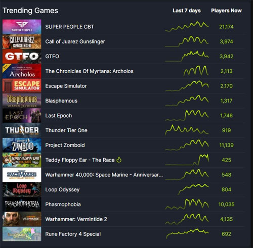 °ÔÀÓ °³¹ß»ç ¿ø´õÇÇÇÃ(´ëÇ¥ ·ùÁ¦ÀÏ)Àº Àڻ簡 °³¹ßÇϰí ÀÖ´Â ½´ÆÃ °ÔÀÓ <½´ÆÛÇÇÇÃ(Super People)>ÀÌ ±Û·Î¹ú °ÔÀÓ ¼ºñ½º Ç÷§ÆûÀÎ ¡®½ºÆÀ(Steam)¡¯¿¡¼ Áö³ ÁÖ¸»ÀÎ 12ÀÏ ±âÁØ ÀÎ±â ½Å±Ô °ÔÀÓ(Trending) 1À§¸¦ ±â·ÏÇß´Ù°í 15ÀÏ ¹àÇû´Ù.