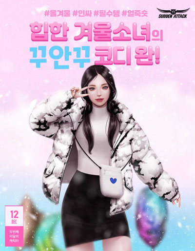 ¡®°Ü¿ï¼Ò³à¡¯ ij¸¯ÅÍ´Â °æÇèÄ¡ Áõ°¡¿Í ÇÔ²² ij¸¯ÅÍ ¼¼Æ® È¿°ú, °¨Á¤ Ç¥Çö 2Á¾À» °®´Â´Ù. 12¿ù 30ÀϱîÁö ¡®°Ü¿ï¼Ò³à¡¯·Î ÀÌ´ÞÀÇ Ä³¸¯ÅÍ¡¯¸¦ Ȱ¼ºÈÇÏ¸é ¿µ±¸Á¦ ¹ÐºÀ ¾ÆÀÌÅÛ, ij¸¯ÅÍ ÇÁ¸® ƼÄÏÀ» Á¦°øÇÑ´Ù. ¶Ç, °°Àº ±â°£ ¡®°Ü¿ï¼Ò³à¡¯ ij¸¯ÅÍ ±â°£À» ´©Àû 300ÀÏ ´Þ¼ºÇÏ¸é ¡®°Ü¿ï¼Ò³à ¿µ±¸Á¦ ¼±Åñǡ¯°ú 500SP¸¦ Áö±ÞÇϸç, ¸ÖƼī¿îÆ®¿¡¼ ȹµæÇÑ ÀÀ¸ð±ÇÀ¸·Î´Â ¡®FAMAS(MG) S.Camo¥± ¿µ±¸Á¦¡¯, ¡®Àåµµ¸®(MG) S.Camo¥± ¿µ±¸Á¦¡¯, ¡®G600(MG) S.Camo¥± ¿µ±¸Á¦¡¯ µî°ú ±³È¯ ¹× ´ç÷ÀÌ °¡´ÉÇÏ´Ù.