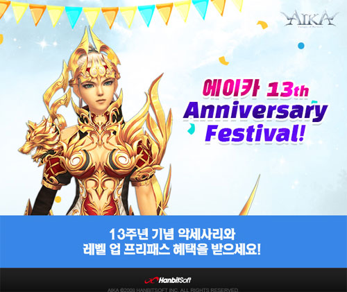 ÇѺû¼ÒÇÁÆ®¿¡¼ ¼ºñ½ºÇÏ´Â Àå¼ö MMORPG(´ë±Ô¸ð´ÙÁßÁ¢¼Ó¿ªÇÒ¼öÇà°ÔÀÓ) '¿¡ÀÌÄ«'°¡ 13ÁÖ³âÀ» ¸Â¾Æ À¯Àúµé¿¡°Ô °¨»çÇÏ´Â ¸¶À½À» ´ã¾Æ ÃÊÆ¯±Þ º¹±ÍÇýÅÃÀ» ºñ·Ô, ´Ù¾çÇÑ º¸»ó°ú À̺¥Æ®¸¦ ÁغñÇß´Ù.