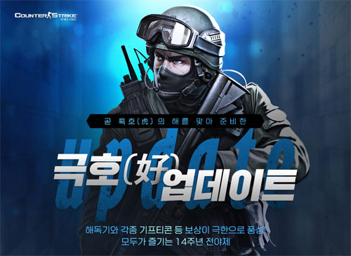¢ß³Ø½¼(´ëÇ¥ ÀÌÁ¤Çå)Àº FPS°ÔÀÓ ¡®Ä«¿îÅͽºÆ®¶óÀÌÅ© ¿Â¶óÀΡ¯(ÀÌÇÏ ¡®Ä«½º¿Â¶óÀΡ¯)¿¡ 14ÁÖ³â Àü¾ßÁ¦·Î ¡®±ØÈ£(û¿) ¾÷µ¥ÀÌÆ®¡¯¸¦ ½Ç½ÃÇß´Ù°í 17ÀÏ ¹àÇû´Ù.