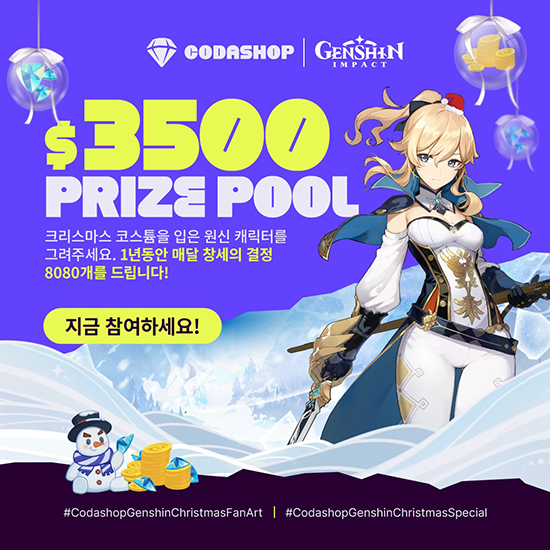 ÄÚ´Ù¼¥(Codashop)Àº Å©¸®½º¸¶½º¿Í »õÇØ¸¦ ¸Â¾Æ Àü¿ª¿¡ °ÉÃÄ ÀÖ´Â ¿ÀÇ¿ùµå ¾×¼Ç RPG(¿ªÇÒ¼öÇà°ÔÀÓ)ÀÎ ¡®¿ø½Å ÀÓÆÑÆ®(Genshin Impact, ÀÌÇÏ ¿ø½Å)¡¯ À¯ÀúµéÀ» À§ÇØ ´Ù¾çÇÑ ¼Ò¼È ¹Ìµð¾î ¹× °æÇ° À̺¥Æ®¸¦ ÁøÇàÇÑ´Ù°í ¹àÇû´Ù.
