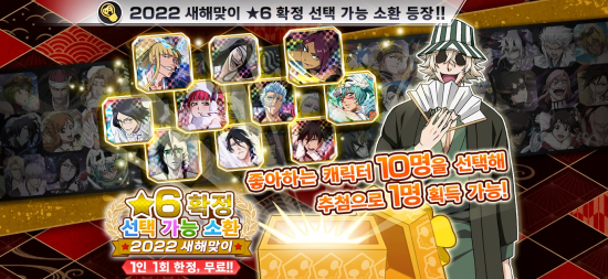 »õÇØ¸ÂÀÌ À̺¥Æ® 1źÀº Ç÷¹ÀÌ¾î ¿©·¯ºÐ¿¡ ´ëÇÑ °¨»çÇÑ ¸¶À½À» ´ã¾Æ ÁÁ¾ÆÇϴ ij¸¯ÅÍ 10°³¸¦ ¼±ÅÃÇÑ ÈÄ ±× Áß Çϳª¸¦ Ãß÷À¸·Î Á¦°øÇÑ´Ù. ¡®2022 »õÇØ ¡Ú6 ij¸¯ÅÍ È®Á¤ ¼ÒȯÀº À̺¥Æ® ±â°£ Áß ¹«·á·Î ÇÑ ¹ø °¡´ÉÇÏ´Ù. ¶ÇÇÑ, ¡®¿¬¸» Ä«¿îÆ®´Ù¿î Ä·ÆäÀΡ¯À¸·Î 1¿ù 12ÀϱîÁö ±â°£ Áß¿¡ ·Î±×ÀÎÇϸé ÅëÈ¥ºÎ 100ÀåÀ» ¼±¹°·Î ¹ÞÀ» ¼ö ÀÖÀ¸¸ç, 28ÀϱîÁö ±â°£ Áß¿¡ ·Î±×ÀÎÇÏ¸é ¿¬¸»¿¬½Ã ¼±¹°·Î ¡®°¢ ¼Ó¼ºÀÇ °ÈÀÇ ¹°¹æ¿ï 300°³¡¯, ¡®¹«Áö°³¸¦ Á¦¿ÜÇÑ °¢ ¼Ó¼ºÀÇ ¸µÅ© °È¾à 250°³¡¯, ¡®¹«Áö°³¸¦ Á¦¿ÜÇÑ °¢ ¼Ó¼ºÀÇ ¸µÅ© ½´ÆÛ °È¾à 150°³¡¯¸¦ Ãß°¡·Î ¹ÞÀ» ¼ö ÀÖ´Ù. Ãß°¡·Î ¡®ÇÔ²² °áÁ¤ÇÏ´Â! ÅõÇ¥ SELECTION 2021 Ä·ÆäÀÎ!¡¯, ¡®¹«·á ½ÃÁð ºê·¹ÀÌºê ¼Ò¿ï ¼Òȯ¡¯À» ÅëÇØ ¹«·á ij¸¯ÅÍ ¼Òȯ ±âȸµµ Á¦°øÇÑ´Ù.