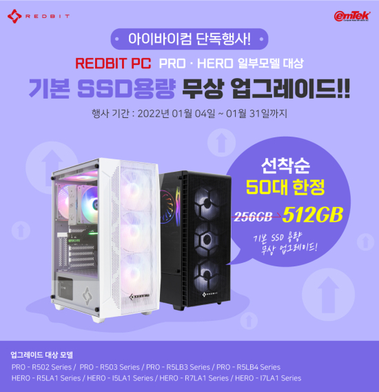 ·¹µåºøÀº 2022³â ÀÓÀγâ(ìóìÙÒ´) »õÇØ¸¦ ¸ÂÀÌÇØ ÀÌ¿¥ÅØÀÇ ÀÚ»ç ¼îÇθôÀÎ ¾ÆÀ̹ÙÀÌÄÄÀÇ »õ·Î¿î ±âȹÀüÀ¸·Î, ÃÖ±Ù °ÔÀÓ ¹× ¿µ»óÀÇ ½Ã´ë¿¡ ¸ÂÃç Á¡Â÷ ¸ÞÀÎ ½ºÅ丮ÁöÀÇ ¿ë·®ÀÌ »óÇâ ÆòÁØÈ°¡ µÇ°í ÀÖ´Â °¡¿îµ¥ ±âÁ¸ ·¹µåºø PRO¿Í HERO Series¿¡ ÀåÂøµÈ SSD¸¦ º°µµÀÇ ±Ý¾× º¯µ¿ ¾øÀÌ NVMe 256GB¿¡¼ 512GBÀ¸·Î 1¿ù ÇÑ ´Þ°£ ¹«»ó ¾÷±×·¹À̵带 ½Ç½ÃÇÑ´Ù°í ÀüÇß´Ù.