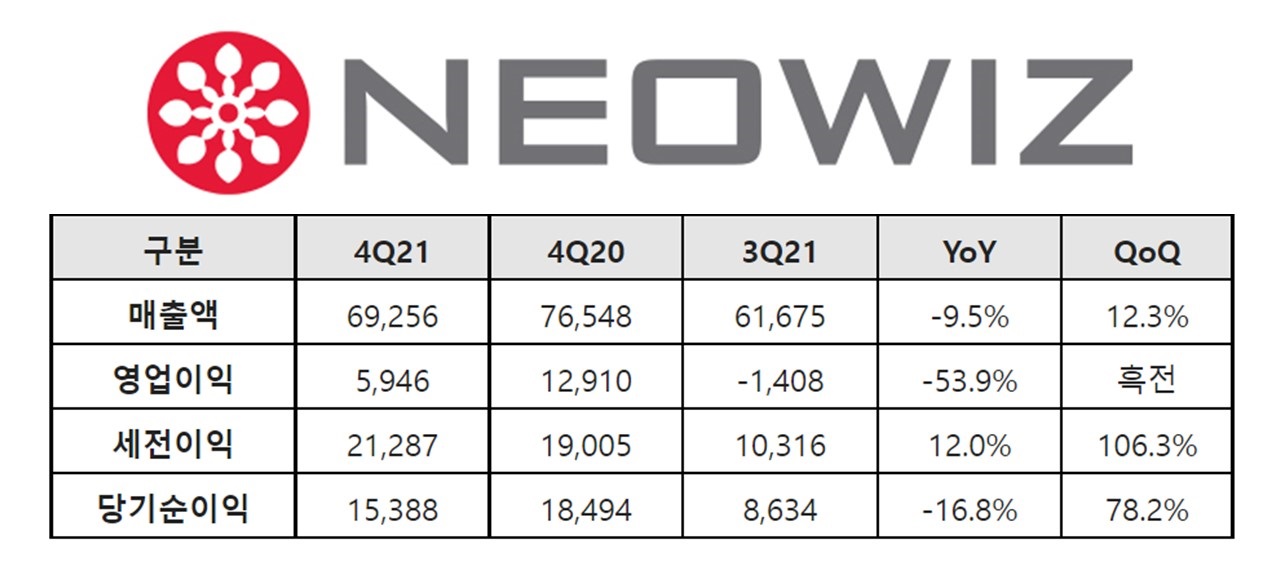 ³×¿ÀÀ§Áî°¡ 2021³â ¿¬°£ ¹× 4ºÐ±â ½ÇÀûÀ» 9ÀÏ ¹ßÇ¥Çß´Ù.