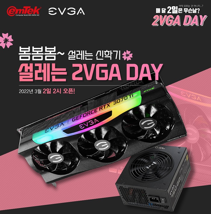 [EVGA=2VGA DAY]´Â EVGA¶õ ´Ü¾î°¡ ¼ýÀÚ 2¿Í ¹ßÀ½ÀÌ ºñ½ÁÇÑ Á¡¿¡¼ À¯·¡ÇÑ Çà»ç·Î, EVGA °ø½Ä ¼îÇθô¿¡¼ ¸Å¿ù 2Àϸ¶´Ù ¼±º¸ÀÌ´Â ´Ù¾çÇÑ Çà»ç¸¦ ¾Æ¿ì¸£´Â ¸íĪÀÌ´Ù. 3¿ù 2VGA DAY ¿¡´Â ½ÅÇб⸦ ¸Â¾Æ ±×·¡ÇÈÄ«µå¿Í ÆÄ¿ö¼ÇöóÀÌ ÆÐŰÁö°¡ Ư°¡·Î ÆÇ¸Å µÇ¸ç, ÄèÀûÇÑ ±³À°, ÀÛ¾÷ ¶Ç´Â °ÔÀ̹ÖÀ» À§ÇØ ¾÷±×·¹À̵åÇÒ °èȹÀÌ ÀÖ´Â ºÐµé¿¡°Ô ÁÁÀº ±âȸ°¡ µÉ °ÍÀÌ´Ù.