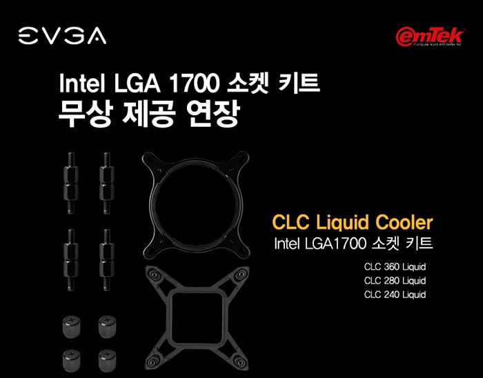 ÀÌ¿¥ÅؾÆÀÌ¿£¾¾´Â 2022³â 3¿ù 31ÀϱîÁö ±¹³» ÀÌ¿¥ÅؾÆÀÌ¿£¾¾¸¦ ÅëÇØ À¯Åë ÁßÀÎ EVGA CLC 360, 280, 240 ¼ö³Ã Ä𷯸¦ ±¸¸ÅÇϼ̴ø ±âÁ¸ °í°´ ¹× ½Å±Ô ±¸¸Å °í°´ ´ë»óÀ¸·Î, ÀÎÅÚ 12¼¼´ë CPU¸¦ Áö¿øÇÏ´Â EVGA LGA 1700 ¼ÒÄÏ Å°Æ®¸¦ 1°³ÀÇ Á¦Ç°´ç ÃÖ´ë 1°³±îÁö ¹«»ó Á¦°øÀ» ¿¬ÀåÇÑ´Ù.