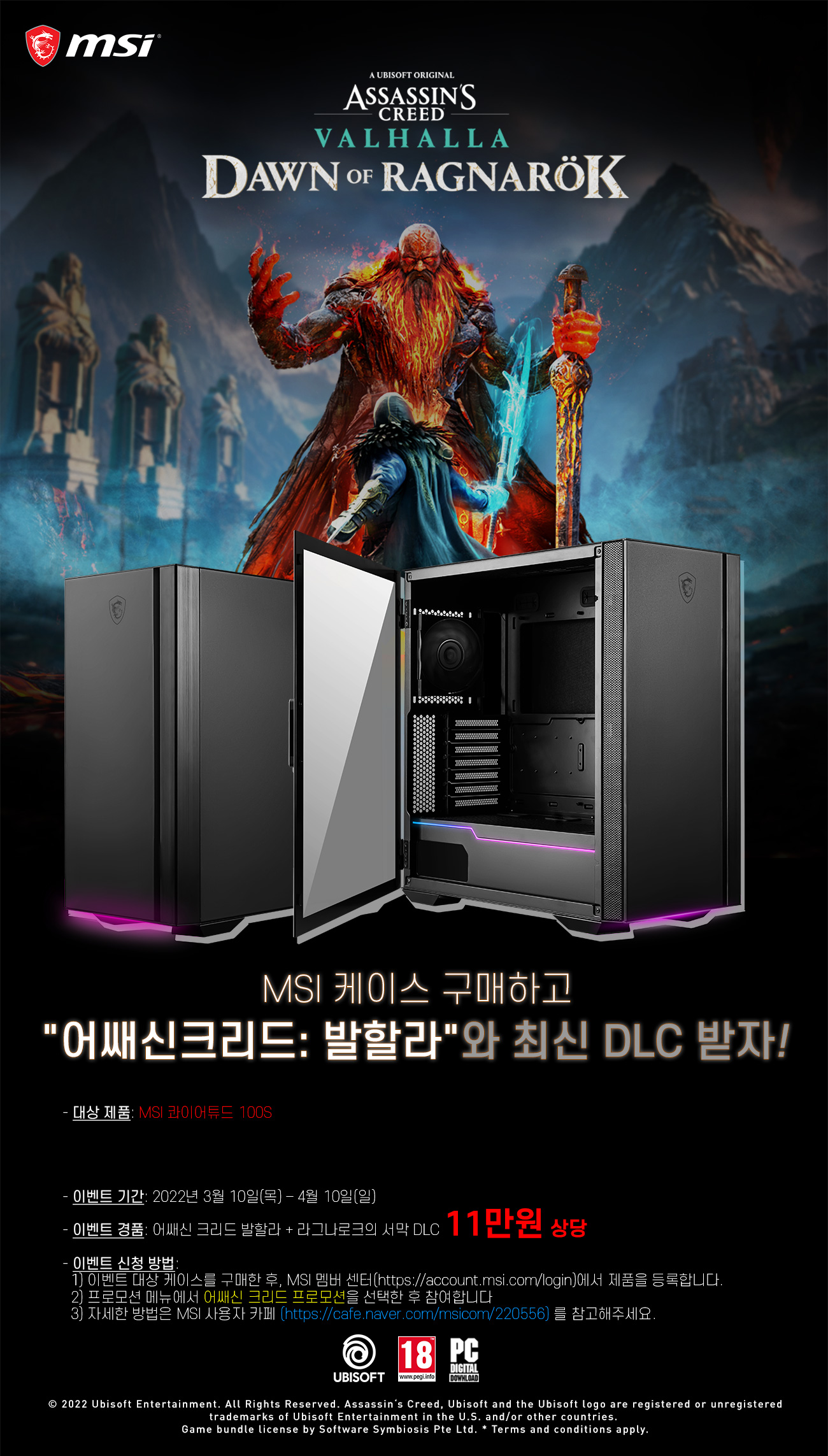 º» À̺¥Æ®´Â 3¿ù 10ÀÏ(¸ñ)ºÎÅÍ 4¿ù 10ÀÏ(ÀÏ)±îÁö ÁøÇàÇϸç, ÇØ´ç ±â°£ ³» ¡®MSI ÄâÀÌ¾îÆ©µå 100S¡¯ °ÔÀÌ¹Ö ÄÉÀ̽º¸¦ ±¸¸ÅÇϸé Àα⠰ÔÀÓ '¾î½Ø½ÅÅ©¸®µå ¹ßÇÒ¶ó' ¹× ÃֽŠDLC '¶ó±×³ª·ÎÅ©ÀÇ ¼¸·' µî 11¸¸ ¿ø »ó´çÀÇ °ÔÀÓ Äڵ带 ÁõÁ¤ÇÑ´Ù.