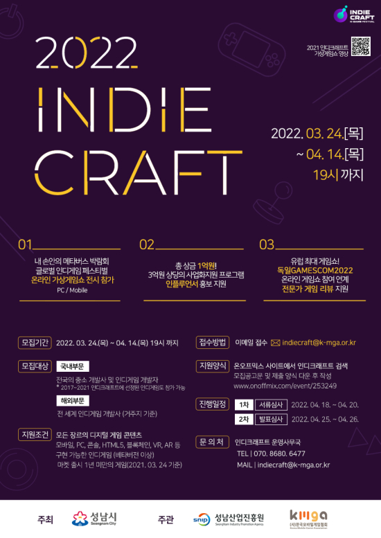 ¼º³²½Ã°¡ ÁÖÃÖÇÏ°í ¼º³²»ê¾÷ÁøÈï¿ø°ú Çѱ¹¸ð¹ÙÀϰÔÀÓÇùȸÀÌ °øµ¿ÁÖ°üÇÏ´Â ¡®2022 ÀεðÅ©·¡ÇÁÆ®¡¯´Â 2017³âºÎÅÍ ÃßÁøÇØ¿À°í ÀÖ´Â ±Û·Î¹ú Àεð°ÔÀÓ °ø¸ðÀüÀ¸·Î¼ âÀÇÀûÀÎ ¾ÆÀ̵ð¾î¿Í ¿ì¼öÇÑ °ÔÀÓ Á¦ÀÛ ±â¼úÀ» º¸À¯ÇÑ Áß¼Ò, Àεð°ÔÀÓ °³¹ß»ç¸¦ ¹ß±¼ÇÏ¿© Áö¼Ó°¡´ÉÇÑ »ç¾÷È Áö¿øÀ» ÅëÇØ ±Û·Î¹ú °ÔÀÓ»ê¾÷À» ¼±µµÇÒ Çõ½Å °ÔÀÓÀ» À°¼ºÇϰí, °Ç°ÇÑ °ÔÀÓ»ýŰè Á¶¼º¿¡ ±â¿©Çϱâ À§ÇØ ½ÃÀ۵ƴÙ.