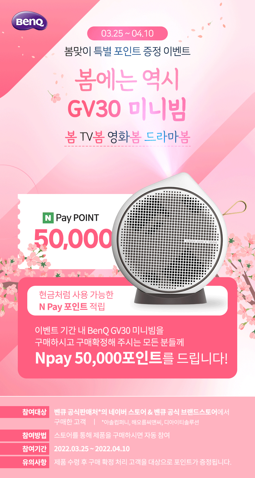 º¥Å¥ÄÚ¸®¾Æ´Â 3¿ù 25ÀϺÎÅÍ 4¿ù 10ÀϱîÁö ¾à 2ÁÖ°£ GV30 ¹Ì´Ï ºöÇÁ·ÎÁ§ÅÍ ±¸¸ÅÀÚ¸¦ ´ë»óÀ¸·Î ³×À̹öÆäÀÌ(Npay) Æ÷ÀÎÆ® ÁõÁ¤ À̺¥Æ®¸¦ ÁøÇàÇÑ´Ù°í ÀüÇß´Ù.