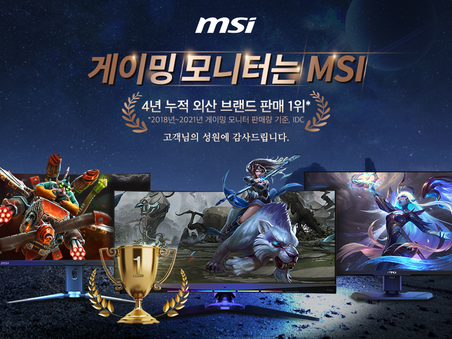 ¼¼°èÀûÀÎ ½ÃÀåÁ¶»ç Àü¹®±â°ü IDC°¡ °ø°³ÇÑ ÀÚ·á¿¡ µû¸£¸é, MSI´Â °ÔÀÌ¹Ö ¸ð´ÏÅÍ ½ÃÀå ÁøÃâÀ» ¼±¾ðÇÏ°í º»°ÝÀûÀÎ Á¦Ç° ÆÇ¸Å¸¦ ½ÃÀÛÇÑ 2018³â ÀÌÈÄ 4³â°£ ´©Àû ÆÇ¸Å·®¿¡¼­ ¿Ü»ê ºê·£µå Áß 1À§¸¦ ±â·ÏÇÑ °ÍÀ¸·Î È®ÀεƴÙ.