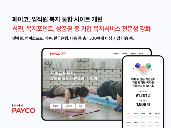 NHNÆäÀÌÄÚ´Â ±â¾÷ º¹Áö ¼Ö·ç¼Ç ºê·£µå ¡®ÆäÀÌÄÚ ºñÁî Ç÷¯½º(PAYCO BIZ+)¡¯ÀÇ °æÀï·Â Á¦°í¿Í ´Ù¾çÇÑ ±â¾÷ °í°´ÀÇ ÀÌ¿ë ÆíÀǼº Áõ´ë¸¦ À§ÇØ ºê·£µå À¥»çÀÌÆ®¸¦ Àü¸é °³ÆíÇß´Ù.