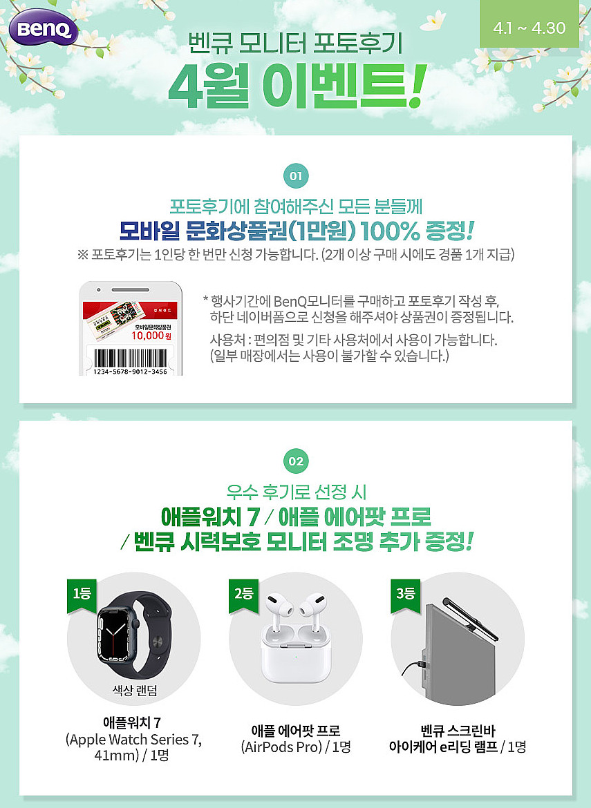 4¿ù ÇÑ ´Þ °£ ÁøÇàµÇ´Â Æ÷ÅäÈıâ À̺¥Æ®´Â º¥Å¥ ¸ð´ÏÅ͸¦ ±¸ÀÔÇÏ°í »çÁøÀ» Æ÷ÇÔÇÑ ±¸¸ÅÈı⸦ ÀÛ¼ºÇÑ ¸ðµç ºÐµé¿¡°Ô ¸ð¹ÙÀÏ ¹®È»óǰ±Ç(1¸¸¿ø±Ç)À» ÁõÁ¤Çϰí, ¿ì¼öÈıâÀÚ 3¸íÀ» ¼±Á¤ÇÏ¿© ¾ÖÇÿöÄ¡ 7, ¾ÖÇà ¿¡¾îÆÌ ÇÁ·Î, ´«ÀÌ ÆíÇÑ ¸ð´ÏÅÍÁ¶¸í ¡®º¥Å¥ ½ºÅ©¸°¹Ù ¾ÆÀÌÄɾî e¸®µù ·¥ÇÁ¡¯¸¦ Ãß°¡·Î ÁõÁ¤ÇÏ´Â Çà»çÀÌ´Ù.