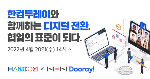 NHN Dooray!°¡ Çѱ۰úÄÄÇ»ÅÍ¿Í ÇÔ²² Çù¾÷ÀÇ Ç¥ÁØÀ» Á¦½ÃÇÏ´Â ¿þºñ³ª¸¦ ¿À´Â 4¿ù 20ÀÏ¿¡ °³ÃÖÇÑ´Ù.