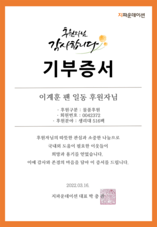 ±âºÎ¼ºñ½º¸¦ ÅëÇØ JYP ¼Ò¼Ó ¾ÆÆ¼½ºÆ® À̰èÈÆÀÇ ÆÒµéÀÌ Àú¼Òµæ ¿©¼ºÃ»¼Ò³âµé¿¡°Ô 352¸¸¿ø »ó´çÀÇ À¯±â³ó »ý¸®´ë 516ÆÑÀ» ±âºÎÇß´Ù.