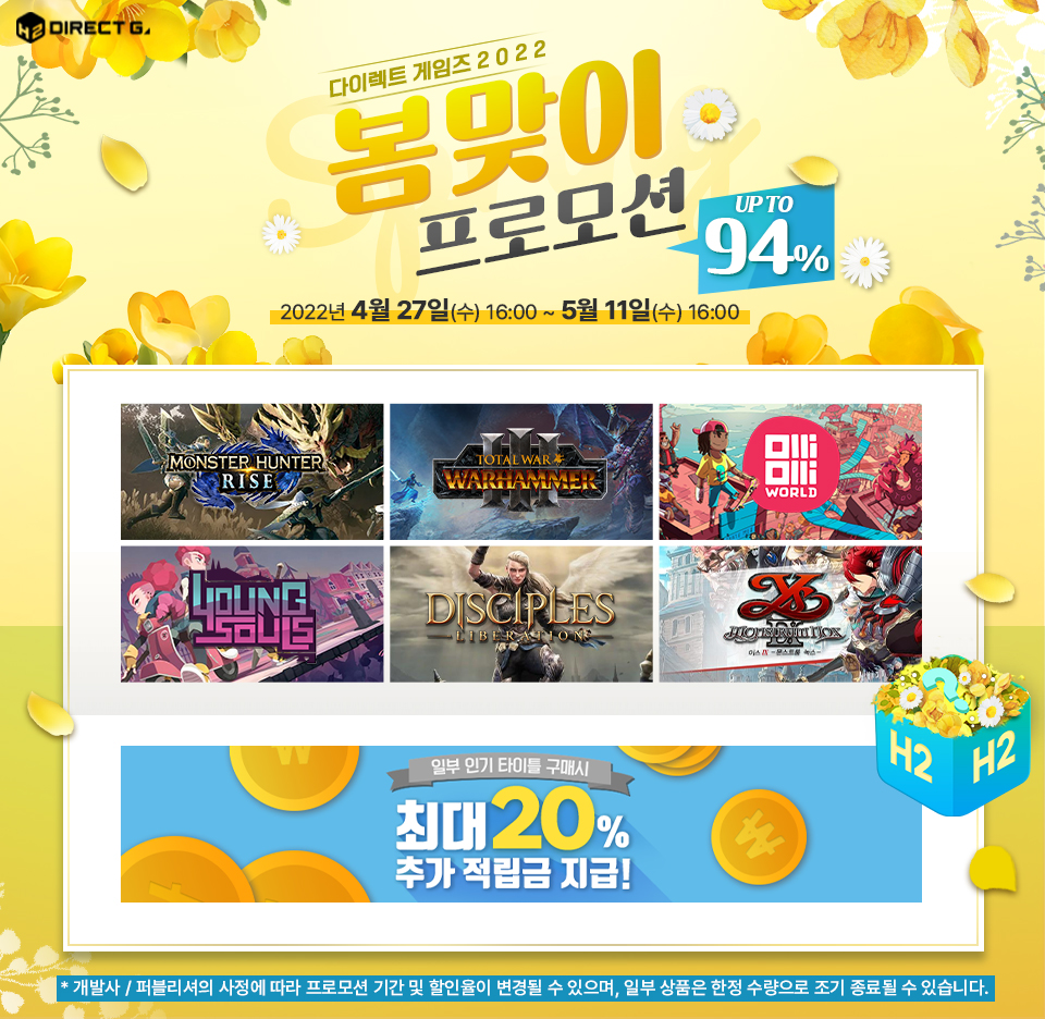 À̹ø ÇÁ·Î¸ð¼ÇÀº 4¿ù 27ÀÏ(¼ö) 16½ÃºÎÅÍ 5¿ù 11ÀÏ(¼ö) 16½Ã±îÁö ÁøÇàµÇ¸ç ÅäÅ» ¿ö: ¿öÇØ¸Ó 3, ¸ó½ºÅÍ ÇåÅÍ ¶óÀÌÁî, µð»çÀÌÇýº: ¸®¹ö·¹À̼Ç, ¿Ã¸®¿Ã¸® ¿ùµå, À̽º 9: ¸ó½ºÆ®·ë ³ì½º, ¿µ ¼Ò¿ï µî µðÁöÅÐ ÄÚµå·Î Á¦°øµÇ´Â ŸÀÌÆ²À» Æ÷ÇÔÇÑ ½ÅÀÛ°ú Àα⠰ÔÀÓÀ» ÃÖ´ë 94% ÇÒÀÎµÈ °¡°Ý¿¡ ±¸¸ÅÇÒ ¼ö ÀÖÀ¸¸ç ÀϺΠÀαâ ŸÀÌÆ² ±¸¸Å ½Ã Àû¸³±ÝÀÌ ÃÖ´ë 20% Ãß°¡µÇ´Â À̺¥Æ®°¡ ÁøÇàµÈ´Ù.