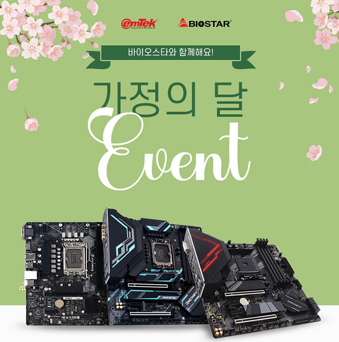 ÀÌ¿¥ÅؾÆÀÌ¿£¾¾´Â 2022³â 5¿ù 1ÀϺÎÅÍ 5¿ù 31ÀϱîÁö ¹ÙÀÌ¿À½ºÅ¸ ·¹ÀÌ½Ì Z690GTA, B660GTQ ¿Í, ¹ÙÀÌ¿À½ºÅ¸ H610MX-E, H610MH, H510MH 2.0 5Á¾ÀÇ ÀÎÅÚ CPU¿ë ¸ÞÀκ¸µå¿Í ¹ÙÀÌ¿À½ºÅ¸ ·¹ÀÌ½Ì B550GTQ, B550M SILVER, B550MH 3Á¾ÀÇ AMD CPU¿ë ¸ÞÀκ¸µå¸¦ ´ë»óÀ¸·Î ÇÏ´Â 5¿ù °¡Á¤ÀÇ ´Þ À̺¥Æ®¸¦ ÁøÇàÇÑ´Ù°í ¹àÇû´Ù.