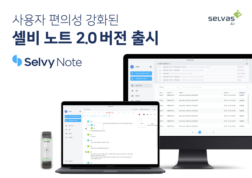 ¼¿¹Ù½ºAI°¡ À½¼º±â·Ï ¼Ö·ç¼Ç ¡®¼¿ºñ ³ëÆ®(Selvy Note) 2.0¡¯À» »õ·Ó°Ô Ãâ½ÃÇß´Ù°í 3ÀÏ ¹àÇû´Ù.