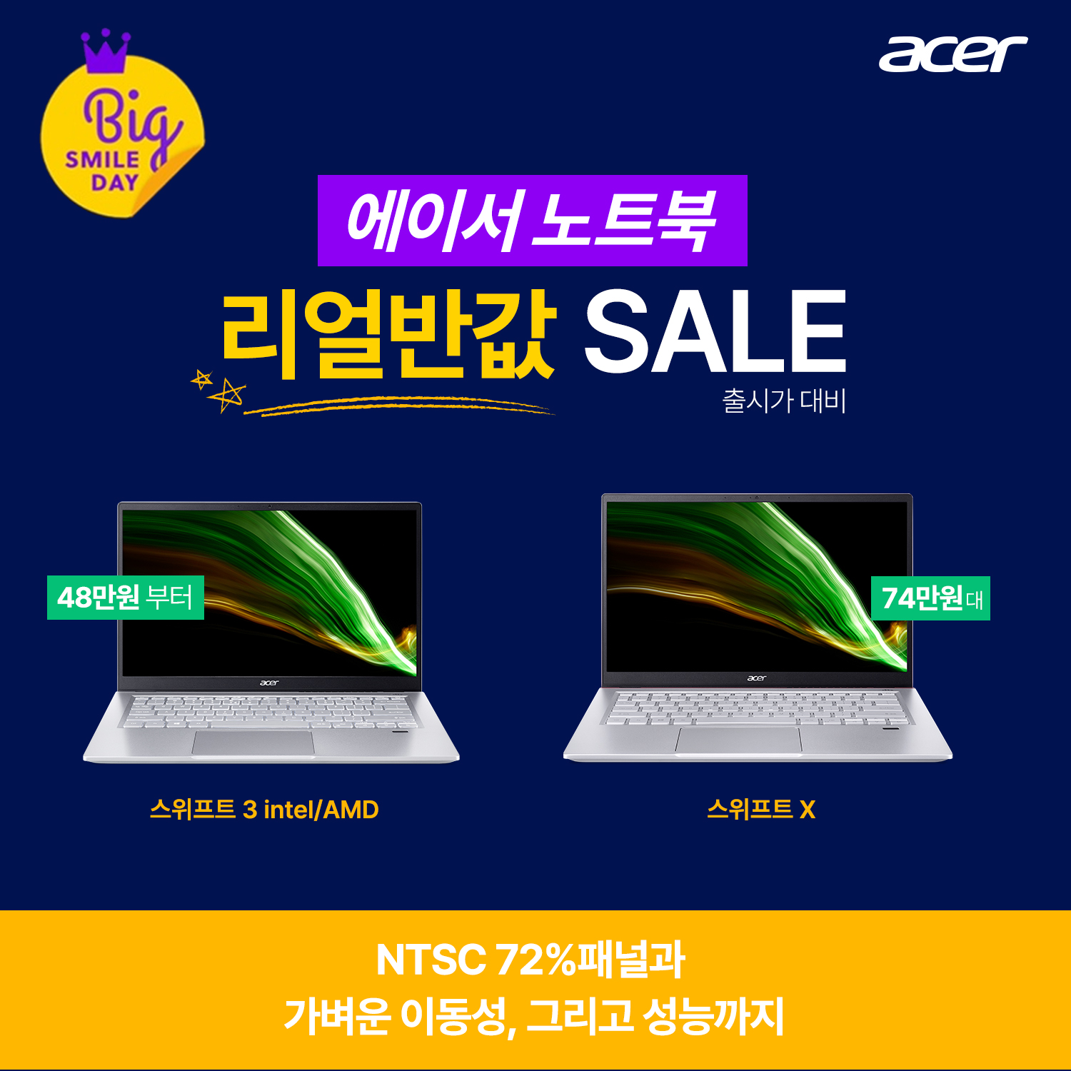 À̹ø Çà»ç¿¡¼´Â ¿¡À̼ÀÇ º£½ºÆ®¼¿·¯ ³ëÆ®ºÏ ¡®½ºÀ§ÇÁÆ®(Swift) 3¡¯, °í»ç¾ç °ÔÀÓ±îÁö °¡´ÉÇÑ Â÷¼¼´ë ¿ïÆ®¶óºÏÀÇ Ç¥ÁØ ¡®½ºÀ§ÇÁÆ® X¡¯, ¼º´É ´ëºñ ÇÕ¸®ÀûÀÎ °¡°ÝÀÇ Ä³ÁÖ¾ó °ÔÀÌ¹Ö ³ëÆ®ºÏ ¡®´ÏÆ®·Î(Nitro) 5¡¯ µîÀ» ºò½º¸¶Àϵ¥ÀÌ 15% ÇÒÀÎÄíÆù°ú ÃÖ´ë 15% ºê·£µåÄíÆù ±×¸®°í 5% Ä«µåÇÒÀÎÀ» ÅëÇØ Ưº°ÇÑ °¡°Ý¿¡ ±¸¸ÅÇÒ ¼ö ÀÖ´Ù.