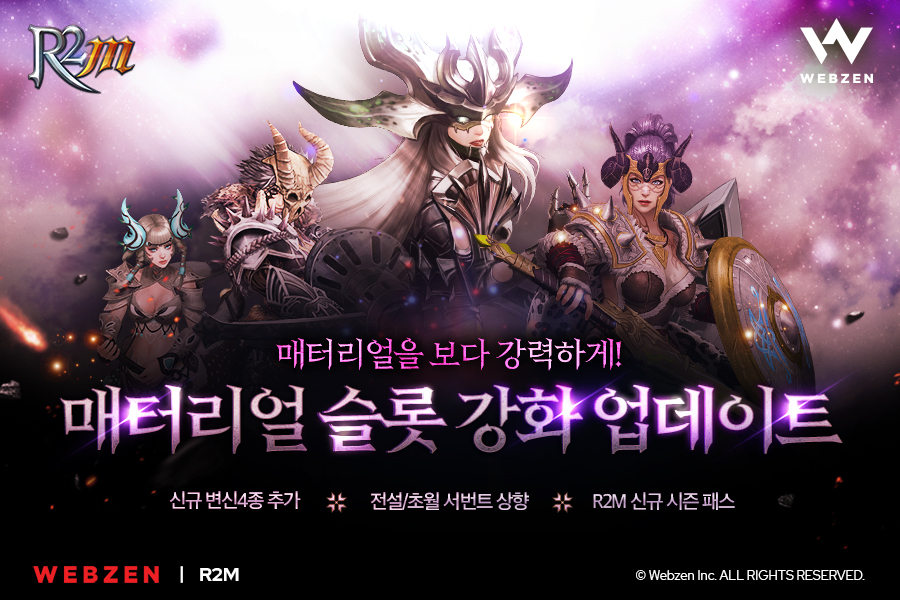 À¥Á¨Àº ¿À´Ã 5¿ù 26ÀÏ ¡®R2M¡¯ÀÇ ¾÷µ¥ÀÌÆ® Á¡°Ë ½Ã°£À» °®°í, °ÔÀÓ ³» ¡®¸ÅÅ͸®¾ó ½½·Ô °È¡¯¸¦ ºñ·ÔÇØ ¡®½Å±Ô º¯½Å¡¯, ¡®¼¹øÆ® »óÇ⡯ µîÀÇ ÄÜÅÙÃ÷¸¦ °ø°³Çß´Ù.