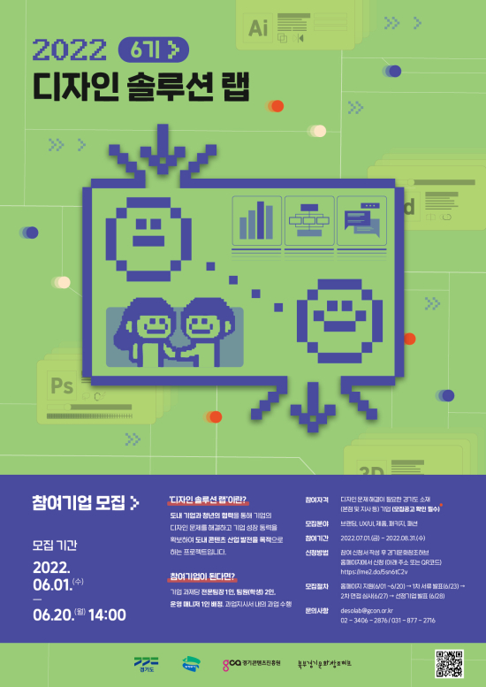 µðÀÚÀÎ ¹®Á¦ ÇØ°áÀÌ ÇÊ¿äÇÑ °æ±âµµ ¼ÒÀçÀÇ ¾÷·Â 7³â À̳» 20°³ÀÇ ±â¾÷À» °ø¸ð¸¦ ÅëÇØ ¼±¹ßÇÑ´Ù. Âü¿© ±â¾÷¿¡´Â µðÀÚÀÎ °á°ú¹°°ú Ȱ¿ë °¡À̵尡 ÁÖ¾îÁö¸ç ¿ì¼ö±â¾÷À¸·Î ¼±Á¤ µÈ 10°³»ç´Â Àü¹® µðÀÚÀ̳ÊÀÇ ÈļÓÁö¿ø ±âȸµµ Á¦°øµÈ´Ù.