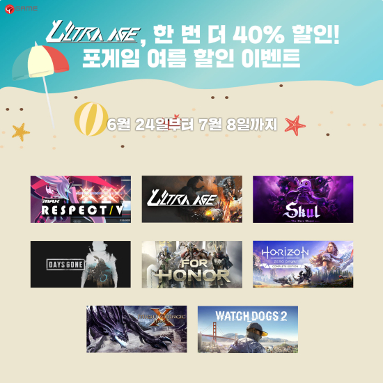 À̹ø À̺¥Æ®´Â Æ÷°ÔÀÓ ³» ÆÇ¸ÅµÇ´Â PC ½ºÆÀ¿ë °ÔÀÓ 45Á¾À» ´ë»óÀ¸·Î ÁøÇàÇÑ´Ù. ÇÁ·Î¸ð¼Ç ±â°£Àº 6¿ù 24ÀÏ ¿ÀÀü 2½ÃºÎÅÍ 7¿ù 8ÀÏ ¿ÀÀü 2½Ã±îÁöÀ̸ç ÃÖÀú 35%¿¡¼ ÃÖ´ë 92%±îÁö ´Ù¾çÇÑ ÇÒÀÎÆøÀ¸·Î °ÔÀÓÀ» ±¸¸ÅÇÒ ¼ö ÀÖ´Ù.