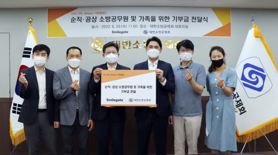 ½º¸¶ÀϰÔÀÌÆ® Èñ¸Á½ºÆ©µð¿À´Â 6¿ù 29ÀÏ (¼ö) ¼¿ï ¼ÛÆÄ±¸¿¡ À§Ä¡ÇÑ ´ëÇÑ¼Ò¹æ°øÁ¦È¸°ü¿¡¼ ¡®¼øÁ÷¡¤°ø»ó ¼Ò¹æ°ø¹«¿ø ¹× °¡Á·À» À§ÇÑ ±âºÎ±Ý Àü´Þ½Ä¡¯À» ÁøÇàÇß´Ù°í ¹àÇû´Ù. À̹ø ±âºÎ±Ý Àü´Þ½Ä¿¡´Â ´ëÇÑ¼Ò¹æ°øÁ¦È¸ ÀÌÇüö ÀÌ»çÀå, ÃÖºÀ°© ȸ¿øÁö¿øºÎÀåÀ» ºñ·ÔÇØ ½º¸¶ÀϰÔÀÌÆ® ¸Þ°¡Æ÷Æ® Á¤ÀçÈÆ ÀÌ»ç, Èñ¸Á½ºÆ©µð¿À ±Ç¿¬ÁÖ ½ÇÀå µîÀÌ Âü¼®Çß´Ù.