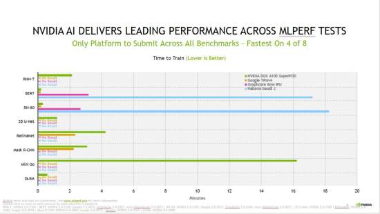 ¿£ºñµð¾Æ´Â MLPerf º¥Ä¡¸¶Å©¿¡¼ ¿£ºñµð¾Æ(NVIDIA)°¡ ÃÖ»óÀÇ AI ÈÆ·Ã ¼º´ÉÀ» Á¦°øÇϰí ÀÖ´Ù°í ¹ßÇ¥Çß´Ù.