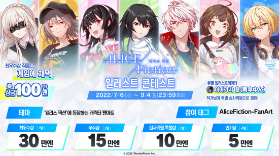 7¿ù 6ÀϺÎÅÍ ¿À´Â 9¿ù 4ÀϱîÁö ÁøÇàµÇ´Â ¾Ù¸®½º ÇÈ¼Ç X ÇȽúê ÀÏ·¯½ºÆ® ÄÜÅ×½ºÆ®´Â °ÔÀÌ¸Ó ´©±¸¶óµµ ¸ð¹ÙÀÏ °ÔÀÓ ¡®¾Ù¸®½º Çȼǡ¯¿¡ µîÀåÇϴ ij¸¯ÅÍ ÀÏ·¯½ºÆ®¸¦ Å׸¶¿¡ ¸ÂÃç ÀÚÀ¯·Ó°Ô ±×¸° ´ÙÀ½, ÁöÁ¤µÈ Âü°¡ ÅÂ±× ¡®AliceFiction-FanArt¡¯¸¦ ¼³Á¤Çϰí ÇȽú꿡 µî·ÏÇϸé ÀÀ¸ð°¡ °¡´ÉÇÏ´Ù.