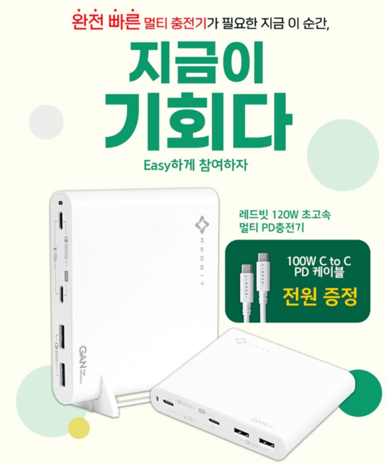 À̺¥Æ® ±â°£ ³» ·¹µåºø 120W GaN ¸ÖƼ PDÃæÀü±â¸¦ ±¸¸ÅÇÏ´Â ¸ðµç °í°´¿¡°Ô´Â 100W C to C PDÄÉÀ̺íÀÌ ÁõÁ¤µÈ´Ù. ¶ÇÇÑ ±¸¸Å ÈÄ ¸®ºä¸¦ ÀÛ¼ºÇÒ °æ¿ì, ÀÚµ¿À¸·Î ÀÀ¸ðµÇ´Â ºí·çÅõ½º ½ºÇÇÄ¿ ·£´ý Ãß÷ À̺¥Æ® ´ç÷ È®·üÀ» ³ôÀÏ ¼ö ÀÖ´Ù. À̺¥Æ® ´ç÷ÀÚ´Â À̺¥Æ®°¡ Á¾·áµÇ°í ³ ÈÄ, 9¿ù 12ÀÏ ÀÌÈÄ¿¡ ¾ÆÀ̹ÙÀÌÄÄ ½º¸¶Æ®½ºÅä¾î¿¡ ¹ßÇ¥µÈ´Ù.