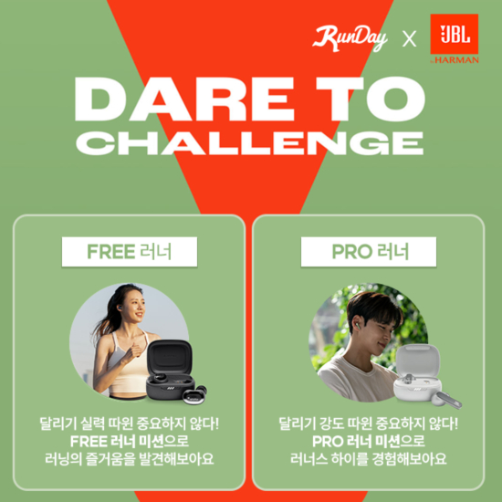ÁÖ½Äȸ»ç ¶¡(TTAM)ÀÌ ¼ºñ½ºÇÏ´Â ´Þ¸®±â/°È±â Ç÷§Æû '·±µ¥ÀÌ'¿¡¼ Çϸ¸ÀÇ ¿Àµð¿À ºê·£µå 'JBL'°ú ÇÔ²² ÁøÇàÇÏ´Â '¡®µ¥¾î Åõ 縰Áö(Dare to Challenge)¡¯°¡ ·¯³ÊµéÀÇ ºñ»óÇÑ °ü½ÉÀ» ¸ðÀ¸°í ÀÖ´Ù.