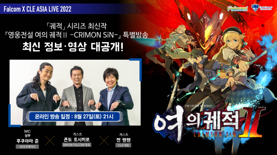 ÁÖ½Äȸ»ç Ŭ¶ó¿ìµðµå ·¹¿ÀÆÄµå ¿£ÅÍÅ×ÀÎ¸ÕÆ®(Clouded Leopard Entertainment)´Â ´ÏÈ¥ ÆÈÄÞ ÁÖ½Äȸ»ç°¡ °³¹ßÇÏ´Â ½ºÅ丮 RPG ¡¸±ËÀû¡¹ ½Ã¸®ÁîÀÇ ÃÖ½ÅÀÛ ¡º¿µ¿õÀü¼³ ¿©ÀÇ ±ËÀû ¥± -CRIMSON SiN-¡» (PlayStation¢ç5/PlayStation¢ç4)ÀÇ ¹øÃ¼Áß¹® ¹× Çѱ¹¾î ¹öÀüÀÇ ÃֽŠÁ¤º¸¸¦ Àü´ÞÇϴ Ưº° ¹æ¼Û ÇÁ·Î±×·¥ ¡¸Falcom ¡¿ CLE ASIA LIVE 2022¡¹À» 2022³â 8¿ù 27ÀÏ(Åä) 21½ÃºÎÅÍ ¹æ¼ÛÇÒ ¿¹Á¤ÀÌ´Ù. À̹ø ¹æ¼Û¿¡¼´Â ¡º¿©ÀÇ ±ËÀû¡»ÀÇ ¸£³× ŲÄÉÀ̵忪À» ¿¬±âÇÑ ¼º¿ì ÈÄÄí¾ß¸¶ Áë(Fukuyama Jun)ÀÌ MC¸¦ ´ã´çÇϸç, ´ÏÈ¥ ÆÈÄÞ ÁÖ½Äȸ»çÀÇ ´ëÇ¥ Äܵµ Åä½ÃÈ÷·Î, Ŭ¶ó¿ìµðµå ·¹¿ÀÆÄµå ¿£ÅÍÅ×ÀÎ¸ÕÆ®ÀÇ ´ëÇ¥ þ À¢À¢ÀÌ Ã⿬ÇÏ¿© ¾Æ½Ã¾Æ Áö¿ªÀÇ »óǰ Á¤º¸¿Í º»ÀÛÀÇ ÃֽŠÁ¤º¸, ÃÖÃÊ °ø°³ ¿µ»óÀ» Àü´ÞÇÑ´Ù.