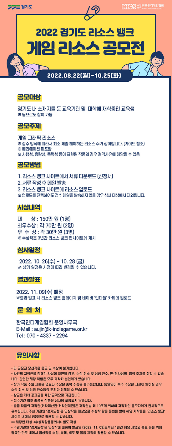 °æ±âµµ¿Í Çѱ¹Àεð°ÔÀÓÇùȸ´Â 22ÀÏ, °ÔÀÓ¿¡ ÇÊ¿äÇÑ ¸®¼Ò½º ¼ö±Þ¿¡ ¾î·Á¿òÀ» °Þ´Â °³¹ßÀÚµéÀ» À§ÇØ ¡®2022 °æ±âµµ ¸®¼Ò½º ¹ðÅ© °ÔÀÓ ¸®¼Ò½º °ø¸ðÀü¡¯À» °³ÃÖÇÑ´Ù°í ¹àÇû´Ù.