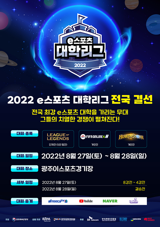¿ÃÇØ ÃÖ°í e½ºÆ÷Ã÷ ´ëÇÐÀ» °¡¸®´Â ¡®2022 e½ºÆ÷Ã÷ ´ëÇи®±×¡¯ Àü±¹ °á¼±ÀÌ ¿À´Â 27ÀÏ(Åä), 28ÀÏ(ÀÏ) ¾çÀϰ£ ±¤ÁÖÀ̽ºÆ÷Ã÷°æ±âÀå(±¤ÁÖ µ¿±¸)¿¡¼ °³ÃֵȴÙ.