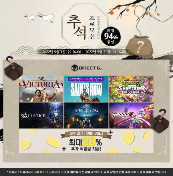 ´ÙÀÌ·ºÆ® °ÔÀÓÁî¿¡¼ ÁøÇàµÇ´Â À̹ø ÇÁ·Î¸ð¼ÇÀº 9¿ù 7ÀÏ ¿ÀÈÄ 4½ÃºÎÅÍ 9¿ù 21ÀÏ ¿ÀÈÄ 4½Ã±îÁö ÁøÇàµÇ¸ç, ÇÁ·Î¸ð¼Ç ±â°£ Áß¿¡´Â ½ÅÀÛ ¹× Àα⠰ÔÀÓÀ» ÃÖ´ë 94% ÇÒÀÎµÈ °¡°Ý¿¡ ±¸¸ÅÇÒ ¼ö ÀÖ´Ù.
