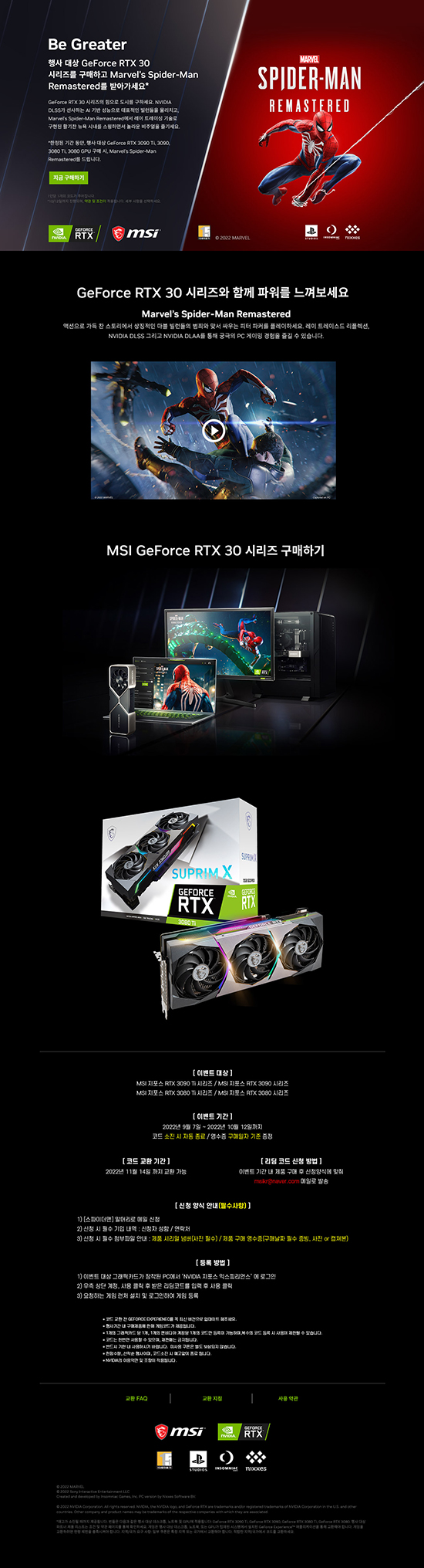 ¡®MSI ÁöÆ÷½º RTX 3090 Ti / 3090 / RTX 3080 Ti / RTX 3080 ½Ã¸®Á ±×·¡ÇÈÄ«µå¸¦ 2022³â 9¿ù 7ÀϺÎÅÍ 2022³â 10¿ù 12ÀϱîÁö ±¸¸ÅÇÏ´Â °í°´Àº °ÔÀÓ Äڵ带 ¹ÞÀ» ¼ö ÀÖÀ¸¸ç, ¡®¿£ºñµð¾Æ ÁöÆ÷½º ÀͽºÇǸ®¾ð½º¡¯¸¦ ÅëÇØ °ÔÀÓÀ¸·Î ±³È¯ÇÒ ¼ö ÀÖ´Ù.