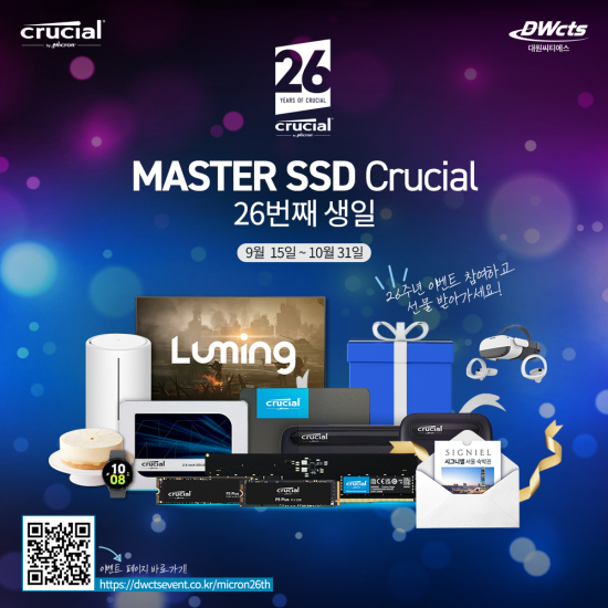 ´ë¿ø¾¾Æ¼¿¡½º°¡ À¯ÅëÇÏ´Â ¸¶ÀÌÅ©·Ð Å©·ç¼ÈÀº ¡®Must Have MASTER SSD¡¯¶ó´Â ijġÇÁ·¹ÀÌÁ ³»°É°í ±¹³» À¯Åë¿¡ ¾ÕÀå¼°í ÀÖ´Ù. À̹ø À̺¥Æ®´Â ¸¶ÀÌÅ©·Ð Å©·ç¼ÈÀÇ 26Áֳ⠱â³äÇØ ±â°£ ³» ¸ðµç Á¦Ç°ÀÇ ±¸¸ÅÀÚ¸¦ ´ë»óÀ¸·Î ¡®1õ¸¸ ¿ø »ó´ç¡¯ÀÇ ´ë±Ô¸ð °æÇ°À» Á¦°øÇÑ´Ù.