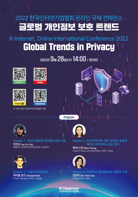 »ç´Ü¹ýÀÎ Çѱ¹ÀÎÅͳݱâ¾÷Çùȸ(ÀÌÇÏ ÀαâÇù)´Â ¿À´Â 9¿ù 28ÀÏ ¿ÀÈÄ 2½Ã, "2022 Çѱ¹ÀÎÅͳݱâ¾÷Çùȸ ¿Â¶óÀÎ ±¹Á¦ ÄÁÆÛ·±½º-±Û·Î¹ú °³ÀÎÁ¤º¸ º¸È£ Æ®·»µå"¸¦ ¿Â¶óÀÎÀ¸·Î °³ÃÖÇÑ´Ù.