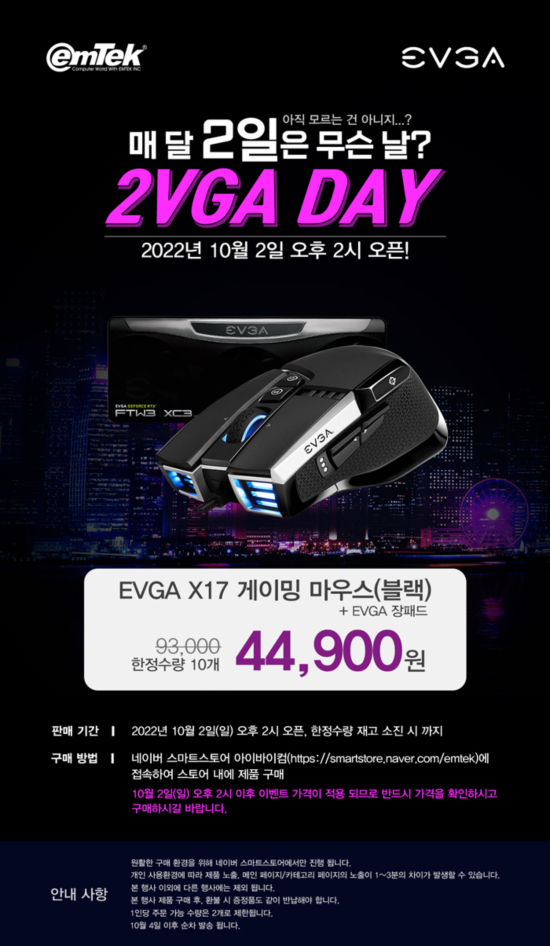 ÀÌ¿¥ÅؾÆÀÌ¿£¾¾(ÀÌÇÏ ÀÌ¿¥ÅØ)´Â 2022³â 10¿ù 2ÀÏ(ÀÏ) ¿ÀÈÄ 2½ÃºÎÅÍ [2VGA DAY]¸¦ ¸ÂÀÌÇÏ¿© ³×À̹ö ½º¸¶Æ®½ºÅä¾î ¾ÆÀ̹ÙÀÌÄÄ¿¡¼ EVGA X17 °ÔÀÌ¹Ö ¸¶¿ì½º(ºí·¢)À» 10°³ ÇÑÁ¤¼ö·®À¸·Î Ư°¡ ¹× ±¸¸Å °í°´ ´ë»óÀ¸·Î ÀåÆÐµå¸¦ ÁõÁ¤ÇÑ´Ù ¹àÇû´Ù.
