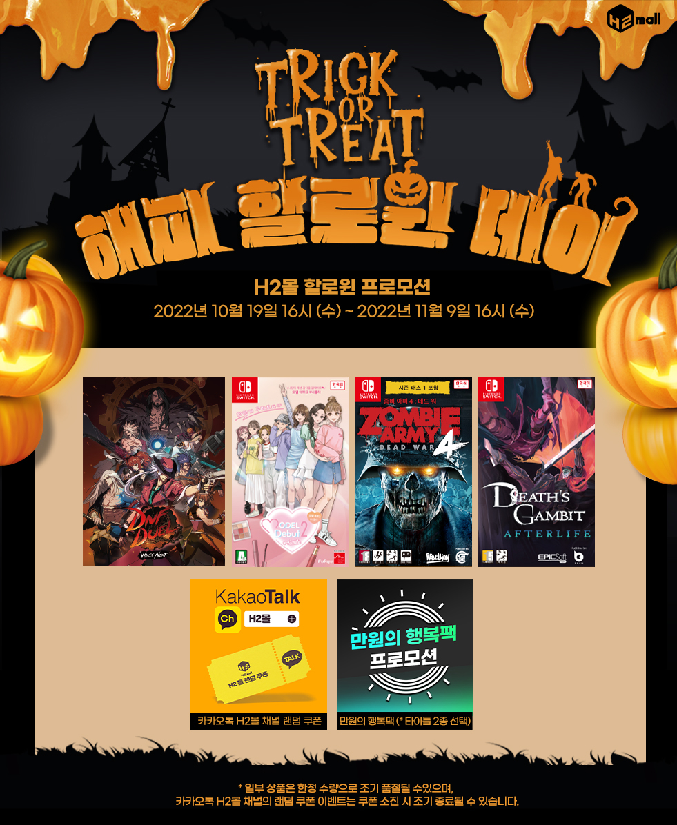 H2¸ô¿¡¼ ÁøÇàµÇ´Â À̹ø ÇÁ·Î¸ð¼ÇÀº 10¿ù 19ÀÏ ¿ÀÈÄ 4½ÃºÎÅÍ 11¿ù 9ÀÏ ¿ÀÈÄ 4½Ã±îÁö ÁøÇàµÇ¸ç, PS4/PS5 DNF Duel ÃÊȸƯÀüÆÇ, Nintendo Switch ¡®µ¥½º °·ºø: ¾ÖÇÁÅͶóÀÌÇÁ ÃÊȸÆÇ¡¯, ¡®¸ðµ¨ µ¥ºß 2 ´ÏÄݶó¡¯, ¡®Á»ºñ ¾Æ¹Ì 4: µ¥µå ¿ö¡¯¸¦ Æ÷ÇÔÇÑ ½ÅÀÛ°ú ÀÎ±â ÆÐŰÁö ŸÀÌÆ²À» ÇÒÀÎµÈ °¡°Ý¿¡ ±¸¸ÅÇÒ ¼ö ÀÖ´Ù.