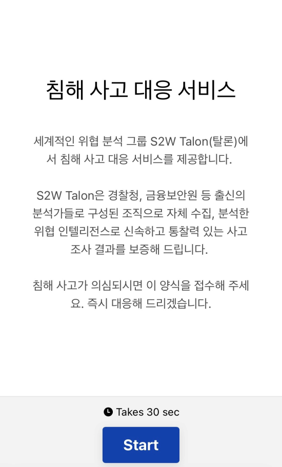 S2W(¿¡½ºÅõ´õºíÀ¯)´Â °í°´ ±â¾÷µéÀÌ ÃÖ±Ù ±ÞÁõÇÏ´Â ·£¼¶¿þ¾î ¹× °¢Á¾ »çÀ̹ö °ø°Ý¿¡ Á¶Á÷ÀÇ IT ÀÎÇÁ¶ó¸¦ ¾ÈÀüÇÏ°Ô º¸È£ÇÏ°í ¼±Á¦ÀûÀ¸·Î ´ëÀÀÇϱâ À§ÇØ ÀÚü Ä§ÇØ »ç°í ´ëÀÀ ¼¾Å͸¦ ÅëÇØ ¡®Ä§ÇØ »ç°í ´ëÀÀ ¼ºñ½º¡¯¸¦ Á¦°øÇÑ´Ù. Ä§ÇØ »ç°í ´ëÀÀ ¼¾ÅÍ´Â S2W ³» ¼¼°èÀû ¼öÁØÀÇ »çÀ̹öÀ§Çù ÀÎÅÚ¸®Àü½º(CTI) ºÐ¼® Á¶Á÷ÀÎ Å»·Ð(TALON)ÀÇ ¼÷·ÃµÈ »ç°í Á¶»ç Àü¹®°¡µé·Î ¿î¿µµÇ¸ç, Ä§ÇØ »ç°í¿Í °ü·ÃµÈ Àü °úÁ¤¿¡¼ ´ëÀÀÀ» Áö¿øÇÑ´Ù.