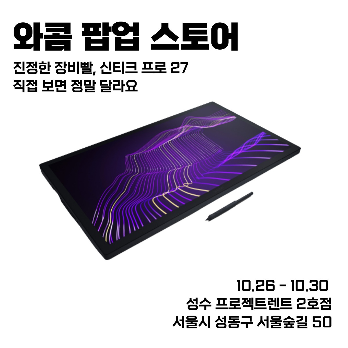 ¿ÍÄÞ(Wacom)ÀÇ Çѱ¹¹ýÀÎ Çѱ¹¿ÍÄÞÀº ½ÅÁ¦Ç° ¡®¿ÍÄÞ ½ÅƼũ ÇÁ·Î 27¡¯ÀÇ Ãâ½Ã¸¦ ±â³äÇØ ¿À´Â 26ÀϺÎÅÍ 5Àϰ£ ¼º¼öµ¿ ÇÁ·ÎÁ§Æ® ·»Æ®¿¡¼ ÆË¾÷½ºÅä¾î¸¦ ¿î¿µÇÑ´Ù.