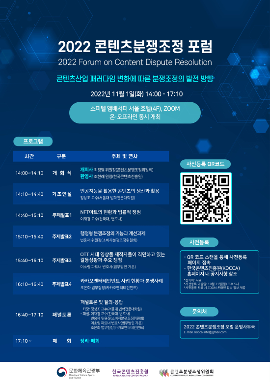 ¹®ÈüÀ°°ü±¤ºÎ¿Í Çѱ¹ÄÜÅÙÃ÷ÁøÈï¿ø(ÀÌÇÏ ÄÜÁø¿ø), ÄÜÅÙÃ÷ºÐÀïÁ¶Á¤À§¿øÈ¸´Â ÄÜÅÙÃ÷»ê¾÷ ³» °ÇÀüÇÑ °Å·¡ ¹× À¯Åë Áú¼ È®¸³À» À§ÇÑ ¡®2022 ÄÜÅÙÃ÷ºÐÀïÁ¶Á¤ Æ÷·³¡¯À» 11¿ù 1ÀÏ ¼¿ï ¼ÛÆÄ±¸ ¼ÒÇÇÅÚ ¾Ú¹è¼´õ ¼¿ï È£ÅÚ¿¡¼ °³ÃÖÇÑ´Ù.