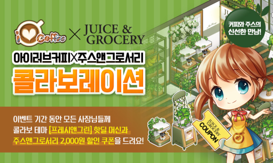 ¡®¾ÆÀÌ·¯ºêÄ¿ÇÇ¡¯ x ¡®ÁÖ½º¾Ø±×·Î¼¸®¡¯ Äݶ󺸴 ±ÝÀϺÎÅÍ ¿À´Â 23ÀϱîÁö ÁøÇàµÈ´Ù. ¸ÕÀú ¡®¾ÆÀÌ·¯ºêÄ¿ÇÇ¡¯´Â Äݶóº¸ÀÇ ÀÏȯÀ¸·Î °Ç°, ºñ°Ç, Çï½Ã¸¦ ÄÁ¼ÁÀ¸·Î ½Å±Ô ÄÜÅÙÃ÷¸¦ ´Ù¾çÇÏ°Ô ¼±º¸¿´´Ù. Å׸¶¸í ¡®ÇÁ·¹½Ã¾Ø±×¸°¡¯À¸·Î ½Å±Ô ²Ù¹Ì±â Å׸¶ ¾ÆÀÌÅÛ 10Á¾, ÇÁ·¹½Ã¾Ø±×¸° ¾ÆÀÌÅÛ 3Á¾, ÇÁ·¹½Ã¾Ø±×¸° Àü¿ë ¸Ó½Å 2Á¾(Ä¿ÇÇ ¸Ó½Å, ¸¸´É ÄíÅ· ¸Ó½Å) µîÀ» ¾÷µ¥ÀÌÆ®Çϰí, ÄÝ¶óº¸ ½ºÆä¼È ¸Þ´º·Î ±Â¹ÙÀÌ ³ªÆ®·ý À½·á¿Í »ø·¯µå ½ºÆ½ »çÀÌµå ¸Þ´º¸¦ Ãß°¡Çß´Ù.