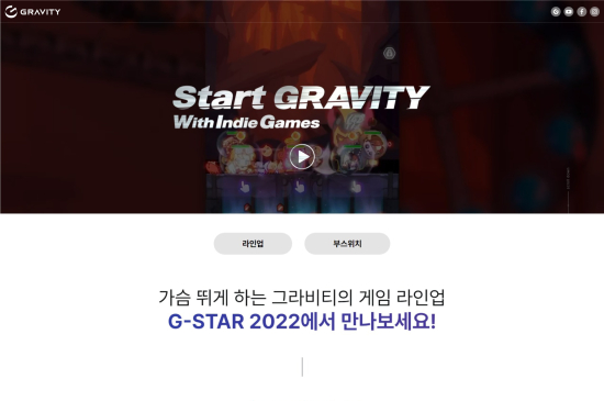 ±×¶óºñƼ°¡ Áö½ºÅ¸ 2022 Ưº° ȨÆäÀÌÁö ¡®Start Gravity G-Star 2022¡¯¸¦ ¿ÀÇÂÇß´Ù°í 11¿ù 9ÀÏ ¹àÇû´Ù.